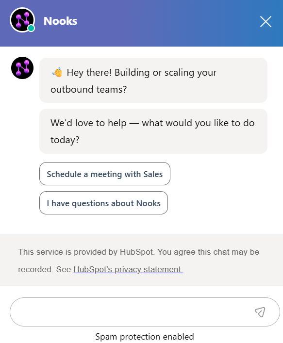 I tried interacting with Hubspot AI chat bot in Nooks.ai (who was using the free version), and as you can see in the screenshot below, I couldn’t ask any free-form questions to it. They just gave me several options to choose, and depending on what I chose, it would find the right person to direct me to.