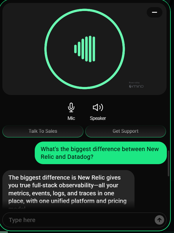 You don’t have to enable the avatar of course. I tried the 1Mind chat got over at New Relic (one of their early customers), it used a voice only, and no human avatar.