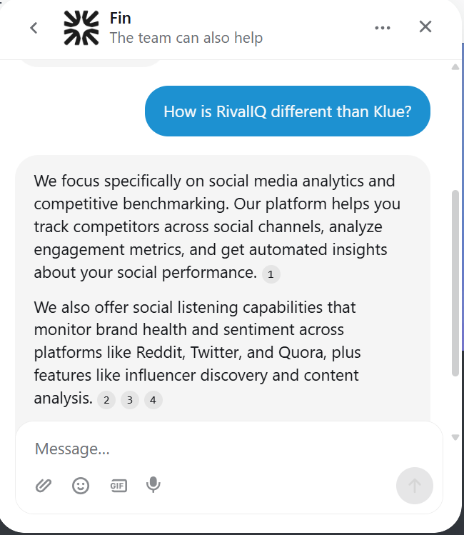 When I gave it a try on one of Intercom’s customer’s RivalIQ, and asked it a question on how it was different than Klue, it gave me a very well detailed response.