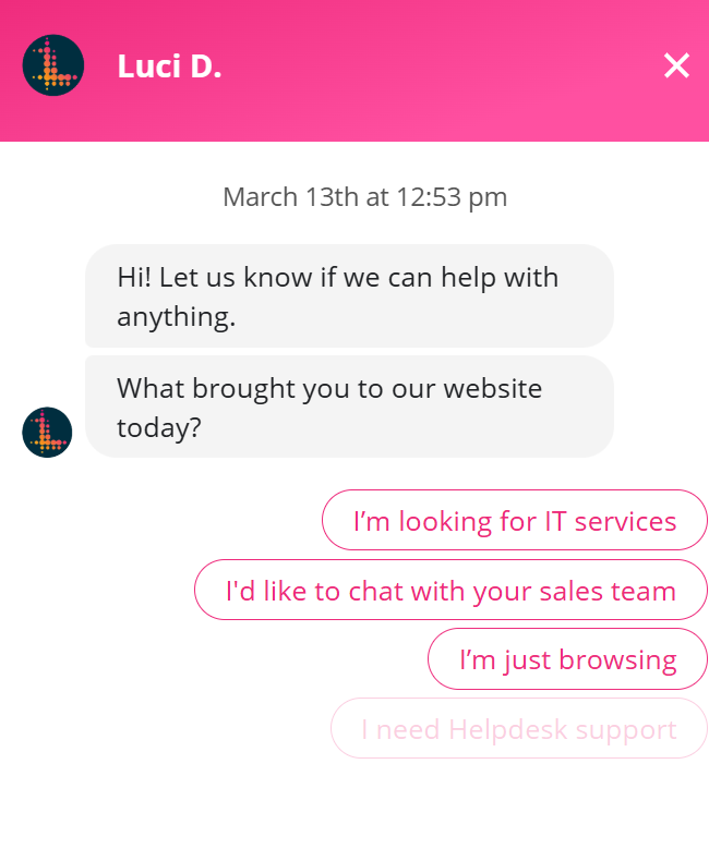 The Chatbot uses playbook-based conversation trees rather than NLP AI, meaning you configure branching question paths rather than training a language model. This makes setup straightforward but of course means, prospects can’t have free form conversations with the bot.