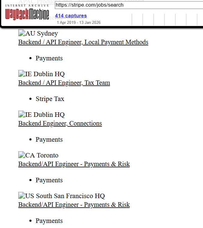 The above is an example of a screenshot on what the Stripe careers page looked like in a prior snapshot in 2025. You can click on any of the job postings that you deem relevant, and it’ll show you what it looked like on that date.