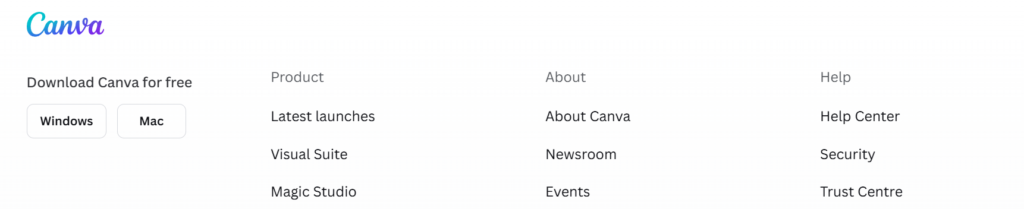 The link is usually in 99% of cases somewhere in the footer. For example, here’s the Trust Center link in Canva‘s homepage (labeled “Trust Centre”):