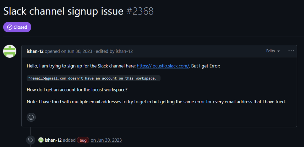 You’ll find threads like “Where can I join the Slack channel?” where a maintainer drops the invite link. For instance, one of the first results I see is someone asking why they get an error when they try to join the Slack channel.