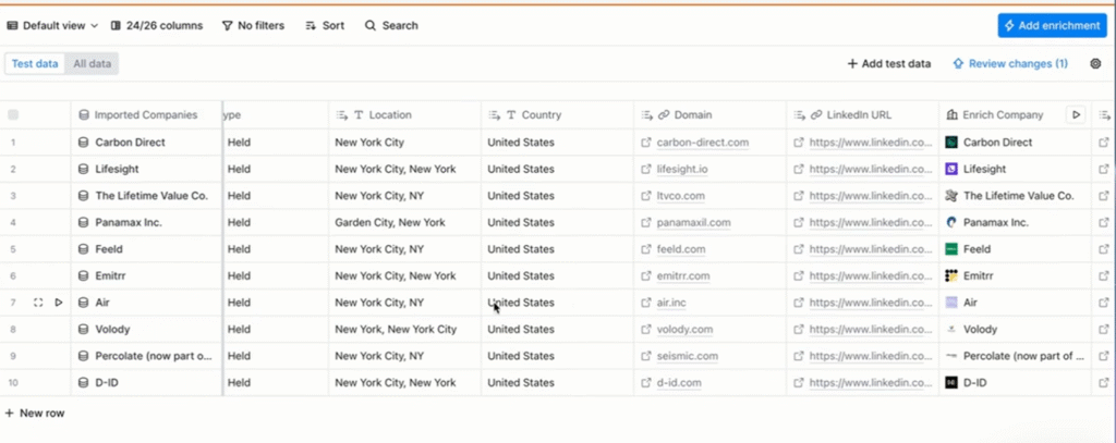Here’s the important part: Enrichments in sandbox mode don’t automatically consume credits. You’re working with real enrichment capabilities, but the system won’t charge you unless you manually choose to run specific cells or columns.