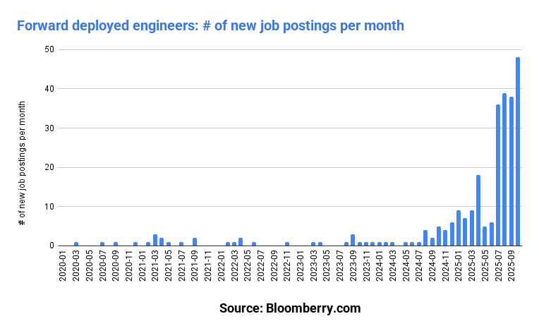 And it’s not slowing down either. In the past 3-4 months, the growth has dramatically accelerated. October 2025 had the highest # of job postings for forward deployed engineers ever.