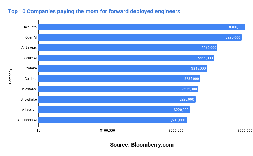 Now, here are the top 10 companies paying the most for forward deployed engineers: