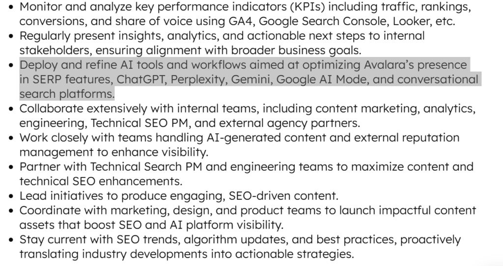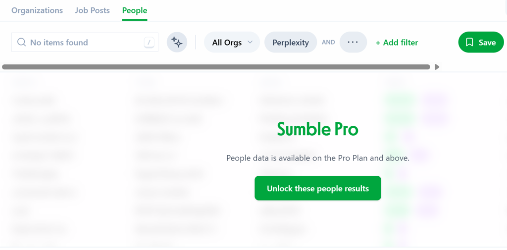 For example, when I searched Sumble for companies that mentioned Perplexity, it returned Avalara. But when I dug into the actual job posting, Avalara was looking for someone to optimize their presence in LLMs like Perplexity – not someone to use Perplexity internally. They weren’t a Perplexity customer at all.